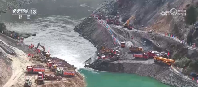 这里是位于川西雅砻江中游的孟底沟水电站建设现场,随着工程机械将最后一批石料陆续推入河道,孟底沟水电站正式完成大江截流。节流后,下游的这一片区域将会把水全部排干,为下一步大坝建设做好准备。