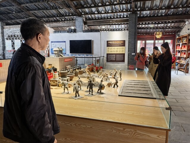 “早在70年代末,我们战旗村就有了酒坊。你们看,这些模型就再现了当年工人们酿酒的场景”……在乡村十八坊的战旗酒坊内,67岁的厂长冯忠会正声情并茂地为游客讲述酿酒历史与乡村变迁。