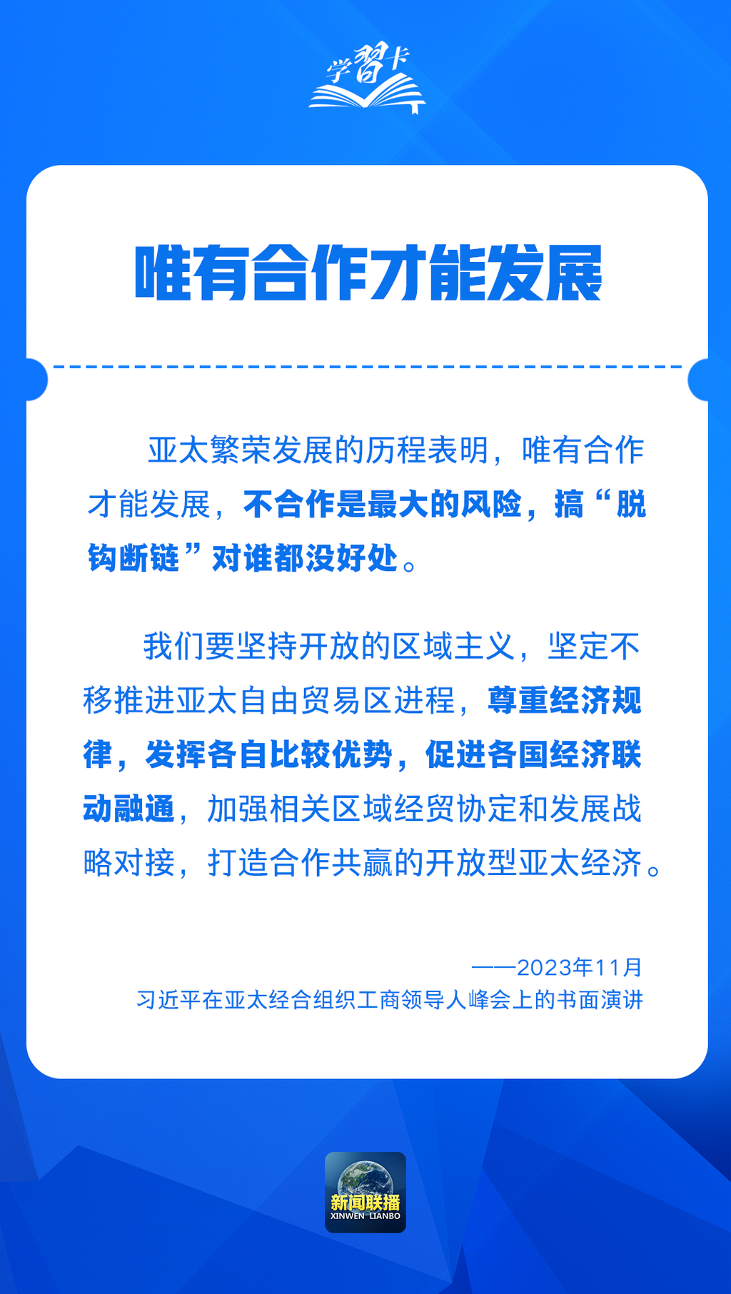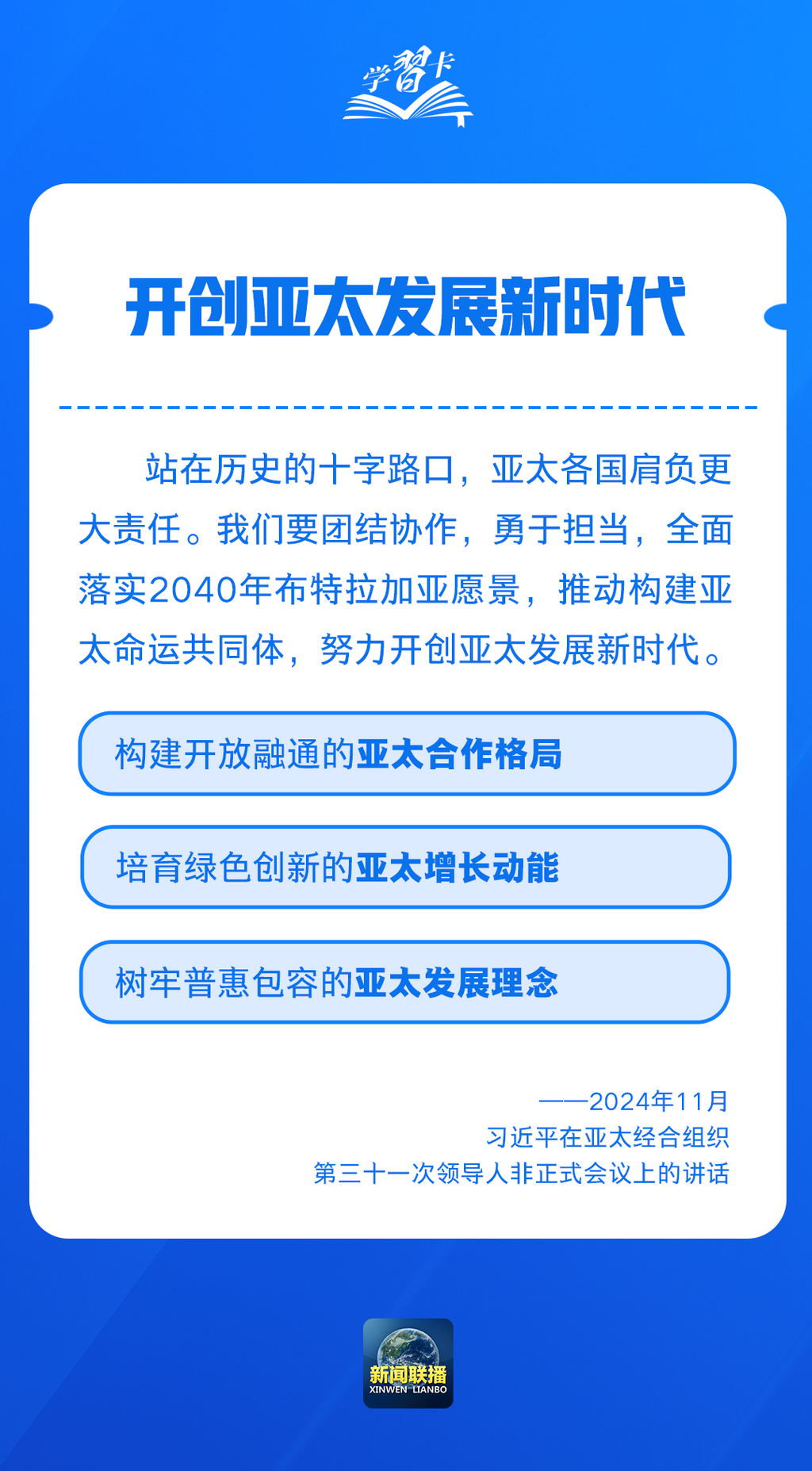 几十年来,亚太经合组织带动亚太地区实现大发展、大繁荣、大融通,助推亚太成为全球经济最具活力板块和主要增长引擎。习近平主席着眼亚太地区人民共同利益,携手各方为推动地区发展、增进人民福祉不断作出中国贡献。