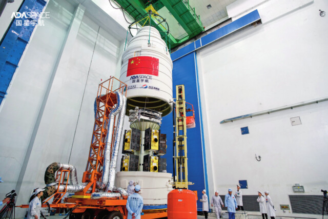 国星宇航将太空计算星座021任务12颗计算卫星发射升空,图为12星在箭上排布(2025年5月摄) 国星宇航供图