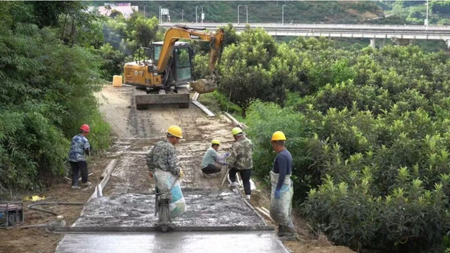 这些天,工作队到岗后的第一件事,就是前往村里的枇杷产业园区基础设施建设项目现场查看。这条正在硬化的产业路,全长约3.8公里,宽3至4米。施工现场,工人们正紧张有序地进行路面硬化和清理。