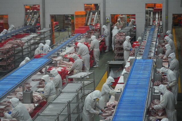 冷鲜肉加工线上的猪肉气调保鲜产品。受访者供图