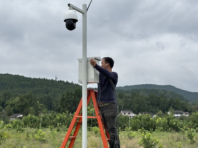 工人在调试监控设备。