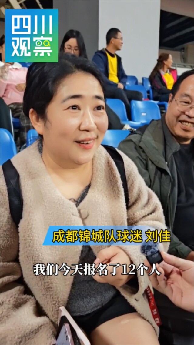 在前面看台偏后的位置,一个由老中青三代组成的12人“超级助威团”格外引人注目。组织者是一位活泼开朗的年轻姑娘。“从去年蓉城队开始,我就带爸妈来看球了!”姑娘指着身后的家人,“今天我们来了12个人!”在她看来,川超的魅力在于真实接地气,“场上奔跑的就像我们身边的朋友,他们当中有老师、有我们的同事……他们都是普通人,为成都而战!为荣誉而战!”