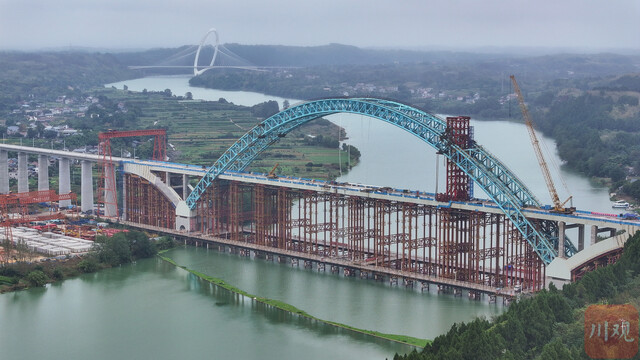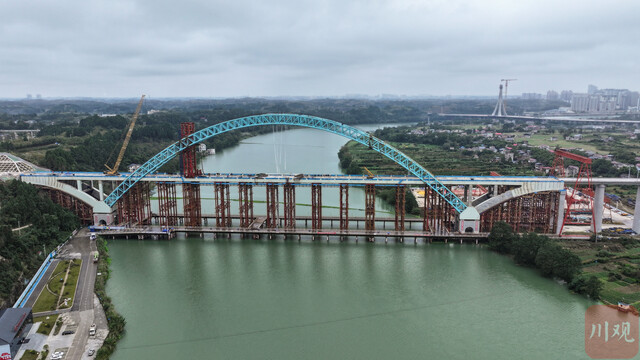 沱江特大桥全长1252米,主桥上部结构为主跨320米中承式钢管混凝土拱桥。该类型桥梁结构属世界首创,让大桥兼具拱桥的大跨度,又能实现梁桥的稳定性,为世界桥梁建设提供新范本。