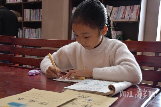 缪英经常带着自己二年级的女儿刘依燃来这里看书。采访当天,不到半个小时,7岁的小依燃就已经读完了两本童话书。这种“小手牵大手”的效应,正无声地推动着阅读之风吹进每一个家庭。