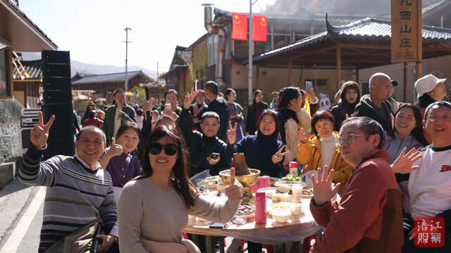 现场,白马青年们为游客献上最高待客礼节“筛糠”,众人合力将游客轻轻抛起,寓意“抛去尘嚣烦恼”;随后,他们唱响嘹亮的敬酒歌,捧上醇厚青稞酒,举杯共饮间,宾客与主人的情谊悄然升温。“这里的风土人情特别独特,牦牛火锅鲜香入味,平武山好水好人更热情,不愧是天然氧吧。”游客任沛熹难掩喜爱之情。