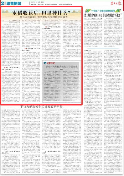 “千斤粮、万元钱”,这是人多地少的四川2000年初就锚定的亩产目标,即通过粮经复合(即大春种水稻,小春种经济作物),“粮袋子”和“钱袋子”两手抓。值得注意的是,近年来,随着高标准农田的扎实推进,粮食适度规模经营条件愈发成熟,种粮大户逐渐成长起来,与传统小农户相比,他们的种植决策呈现出三个新变化: