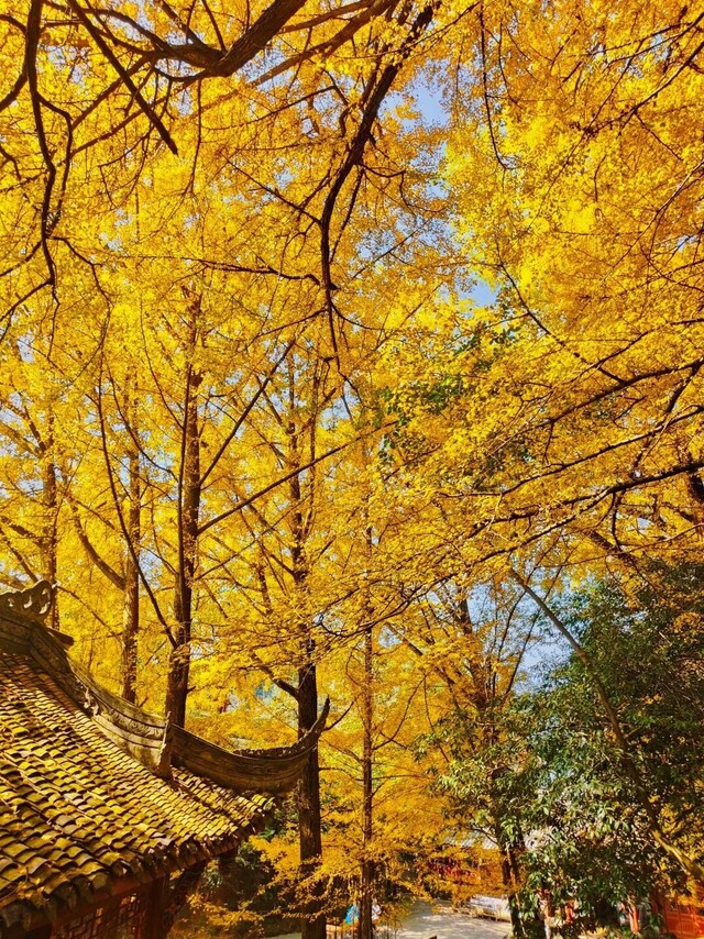 在蒙顶山景区内乘坐索道前往天盖寺,正值一年中当中的“银杏季”,天盖寺的千年银杏群已达盛景。记者在这里见到不少游客专程来打卡这满眼金色,蒙顶山的千年银杏也成为每年秋季令游客慕名而来的热门景点。