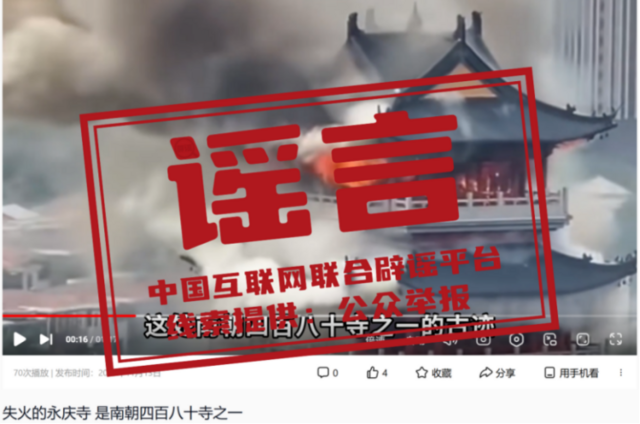 谣 言 江苏张家港“南朝四百八十寺之一”被烧?