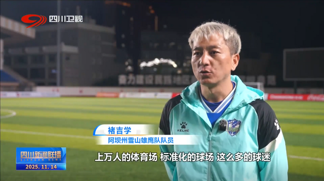 阿坝州雪山雄鹰队队员 褚吉学:上万人的体育场、标准化的球场、这么多的球迷,我们也是从来没感受到过这么好的氛围。