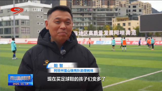 阿坝州雪山雄鹰队助理教练 阳智:体育商品店就给我们的反馈,现在买足球鞋的孩子们变多了,家长也希望这些孩子们到运动场来参加这种训练,这种意义应该是深远的。