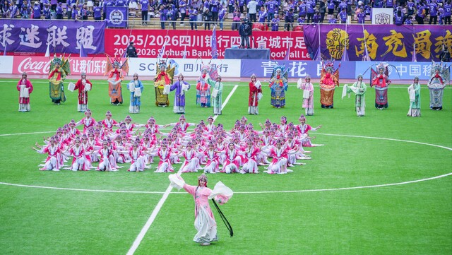 南充主场的非遗展演更是“真心换真心”的文化表达。川剧小演员破“春”字绸布而出,用稚嫩而认真的舞姿传递热爱;大皮影穿梭赛场,把民间艺术的真心融入足球狂欢;仪陇剪纸剪出“川超雄起”,每一刀都是对家乡的真心祝福。没有高高在上的展示,只有融入赛场的真心狂欢。