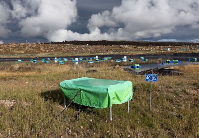 “拉索”装置离机场约10公里,放眼望去,古冰川地貌的海子山延绵不断,荒芜辽阔、巨石无数,大小湖泊如星辰落地。