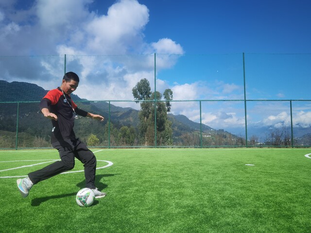 今年3月起,他又成为甘洛县普昌初级中学的一名足球教练,每周负责给该校学生上两节足球课。