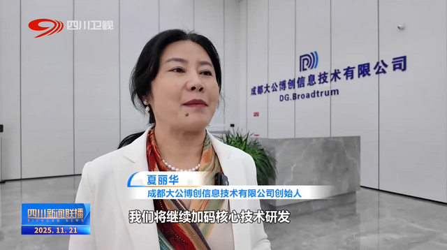 成都大公博创信息技术有限公司创始人 夏丽华:我们将继续加码核心技术研发,计划未来三年投入超亿元,重点突破扩展频段(技术)问题,研发 “低空通信导航监视一体化系统”,给低空航线画好 “电磁地图”,为低空安全装上 “智慧天眼”。