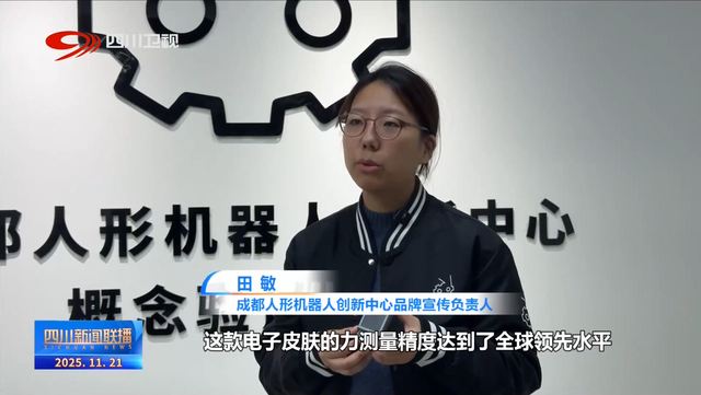 成都人形机器人创新中心品牌宣传负责人 田敏:这款电子皮肤的力测量精度达到了全球领先水平,即便是一片羽毛轻触的力度也能被它灵敏捕捉,它还拥有超过1500赫兹的感知频率,微秒级的动态接触变化都可以被轻易捕捉,非常适合精密制造等对精度要求极高的专业场景。