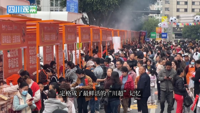 在攀枝花的“川超集市”里,盐边羊肉米线、沸腾羊肉汤飘香,球迷排队嗦粉成烟火地标,赛场周边化身舌尖消费热力场;成都双流足球嘉年华融合航空文创、南充丝绸非遗与本地美食,100余家商户入驻,歌舞表演加持让观赛闲暇更具惬意;绵阳市集汇聚米粉、肥肠等本地风味与定制文创,联动客场展示名优特产。