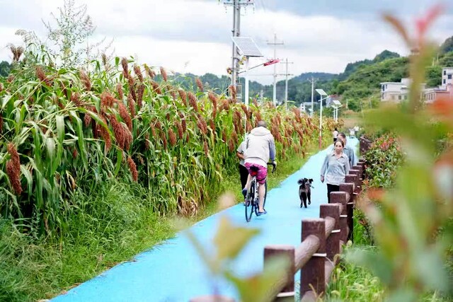 村民在茅溪镇万亩高粱园区内散步 蔡琳摄