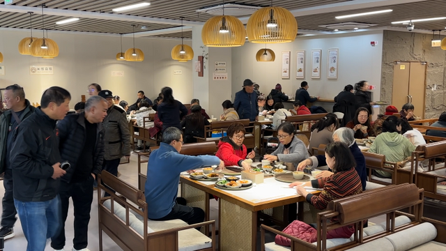 这里的正确打开方式可不止干饭!端着餐盘冲进后门的小花园,在郁郁葱葱的绿树下,就着冬日暖阳吃饭,自带文艺滤镜,拍照发圈秒获赞。吃完还能去旁边的阅读空间续杯茶,或者逛逛文创区,完美实现“看展+干饭+休闲”的三重快乐。家住附近的市民更是常客,有阿姨带孩子吃四荤一素加两份饭才花42块,直言再也不用往对街找吃的了。