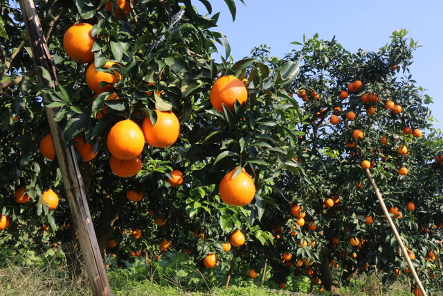 桂花村村民李连明从上世纪80年代开始种植柑橘,起初仅利用自家土地种植了3亩,以椪柑、无核橘为主。2016年,为方便柑橘储存,李连明专门在屋前修建了一个库房。2018年,李连明将附近村民闲置的土地利用起来,规模化种植爱媛、砂糖橘等,种植面积逐步扩大到30亩。平时他一个人在村上管护柑橘,每年3至5月最忙的时候,李连明便雇佣五六位村民打理果园,向每人每天支付80元工资。最近,李连明大部分时间都在果园忙碌,除了采摘,还用三轮车为客户送货。