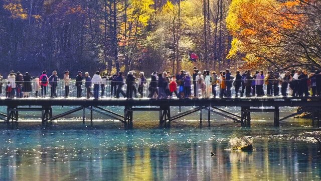 在高铁、高速助力下,九寨沟景区年度游客人次不断创新高,11月22日9时首次突破700万人次大关。