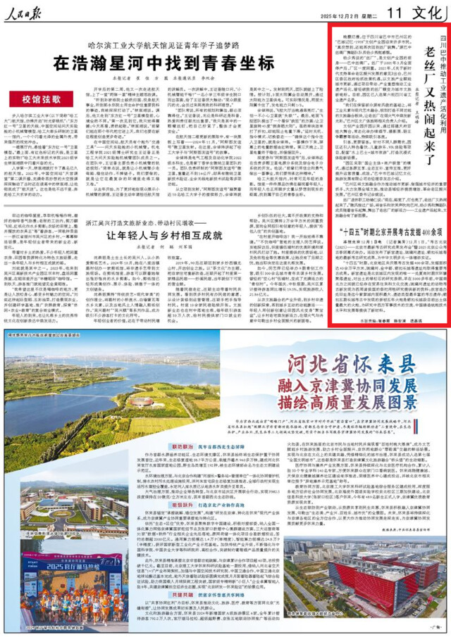杨少秀说的“丝厂”,是文创产业园的前身——巴中丝绸厂。丝厂于2001年3月全面停产后,厂区一度闲置。2021年,《关于新时代支持革命老区振兴发展的意见》出台,巴州区委区政府抢抓政策机遇,以文旅产业赋能城市更新,通过项目带动、产业重塑推动工业遗产活化,曾经破败的丝厂蝶变为城市文旅新地标。目前,园区已入选第六批四川省工业遗产名录。