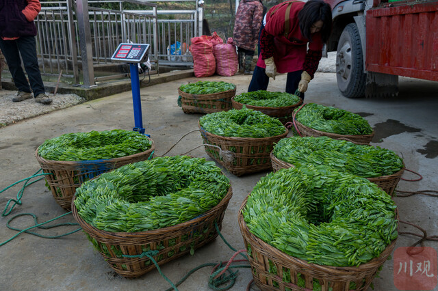 据当地农户介绍,这种叠码豌豆尖的方法一直是本地独有的技艺。凭借其特殊的保鲜效果,带着晨露的豌豆尖当天下午便能出现在成都、重庆的市场上,让市民品尝到那份源自田间的清香。