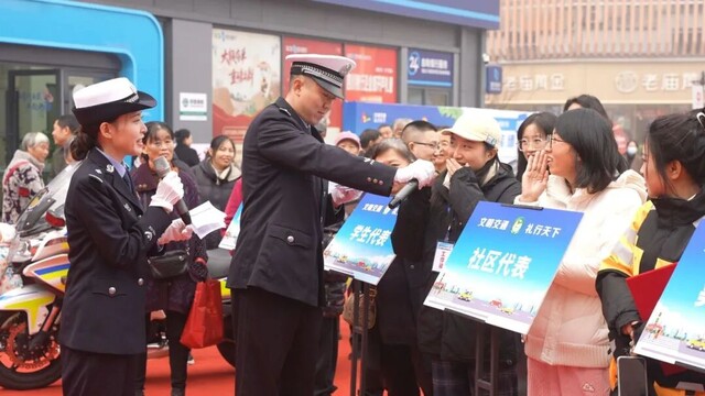 最受现场市民欢迎的当属交通安全知识答题抽奖。无论是老者,还是青年,都积极参与互动。一份份印有交通安全倡议标识的礼品,让大家在收获惊喜的同时,加深了对文明交通、安全出行的理解和关注。