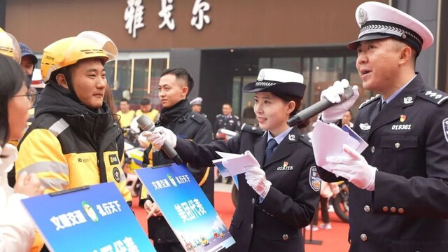 “遵守交通法规,拒绝危险驾驶,礼让行人,平安出行。”民警代表领誓。字字千钧的誓言,不仅是公安交警守护群众平安出行的郑重承诺,更传递出全社会共同践行文明交通的坚定决心,现场氛围庄重而热烈。