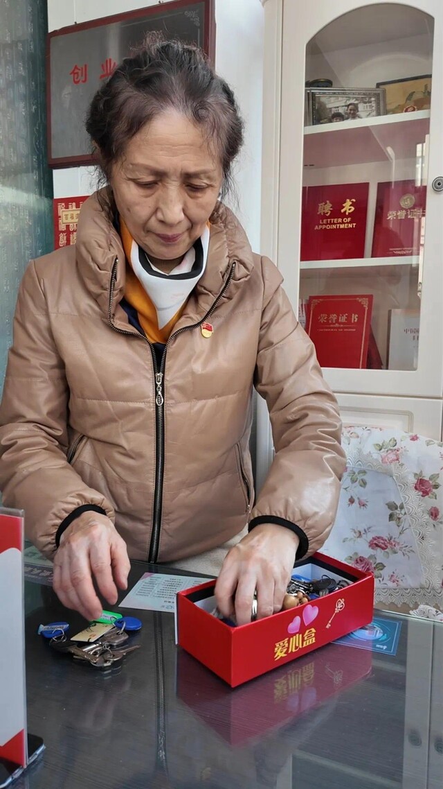 居民为什么敢交?答案很朴素:信任。这信任不是凭空而来,是巨澜波用九年时间一步步“攒”出来的。从2016年帮邻居应急开始,钥匙一把把汇聚,如今已装满爱心盒。她每天爬楼五六趟,帮不在家的居民开窗通风、检查水电,给独居老人陪伴关怀。对她来说,这些钥匙串起的是每家每户的情况,更是一份沉甸甸的责任。