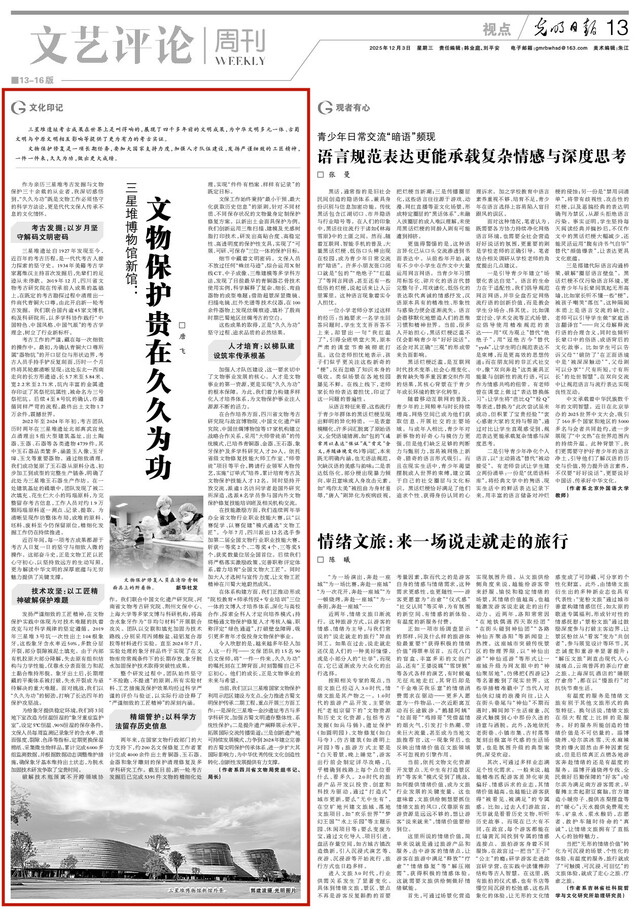 作为亲历三星堆考古发掘与文物保护三十余载的从业者,我深切感悟到,“久久为功”既是文物工作必须恪守的科学方法论,更是代代文保人传承不息的文化情怀。