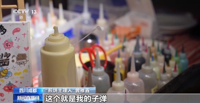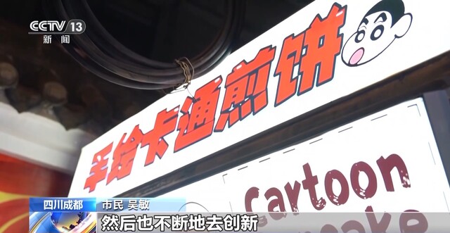 曾雅鑫告诉记者,自己是学美术专业的。偶然的机会看到成都夜市人气火爆,也想着来这里做点生意。几经思考,她决定结合自己的专业特长,开辟卡通图案煎饼这条“新赛道”,赋予传统小吃全新的形态和艺术价值。没想到,这样的创意赢得了不少消费者的喜爱。随着曾雅鑫制作卡通煎饼的短视频在网络上走红,更是有全国各地的游客慕名而来,她也被网友们称为“煎饼主理人”。