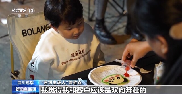 “煎饼主理人”曾雅鑫:有那种情侣的定制图案,他想给他的另外一半一个惊喜。还有的是给自己小孩带的,一个叔叔笑容满面,他说,因为我的女儿特别喜欢,开心是金钱买不来的,我等一下还要开两百多公里给它带回去。