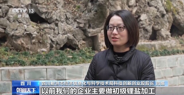 四川射洪市经济信息化与科学技术局科技创新创业股股长 周娟:以前我们的企业主要做初级锂盐加工,没有核心技术和自主知识产权,受市场行情波动影响较大,抵御风险能力较弱。