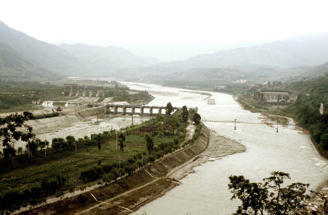四川都江堰渠道工程全景(1985年整理)。新华社记者于澄建摄