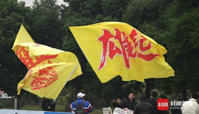 球迷在场边挥舞“雄起”大旗