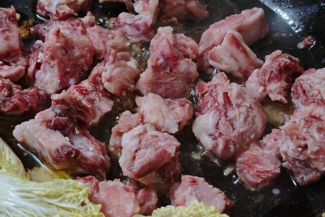 烙锅上待烤的排骨