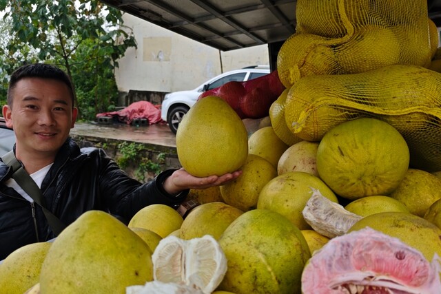 两地食材的交换,图的是新鲜。有人天不亮就背着菜出门,有人甚至头一天就直接住在了异地的镇街上。这几年,35岁的陈国军都在干用小货车拉货卖水果的生意,常在云贵川三省来往,这趟出来,他从泸州纳溪拉了2600斤水晶柚和琯溪蜜柚,一路走到云南省昭通市威信县水田镇已经卖掉了一部分。从水田镇到镇雄坡头镇时接近傍晚,他算准赶场天的时间,将车在集市角落里停下后就近找住处,第二天凌晨4点起床,先清扫货车周边的场地,再就着后备箱支起水果摊。
