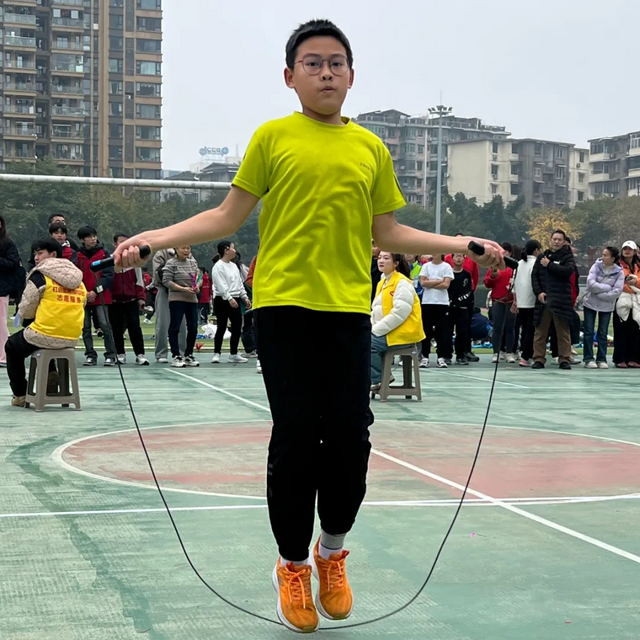 这是一场属于全区校园的体育赛事,来自10所小学、6所初中的约600名师生齐聚一堂,在单人跳绳、双人跳绳、集体长绳和踢毽子四大项目中展开趣味与竞技兼备的较量。绳影翻飞,彩羽灵动,每个赛场都跃动着青春的身影,洋溢着运动的激情。