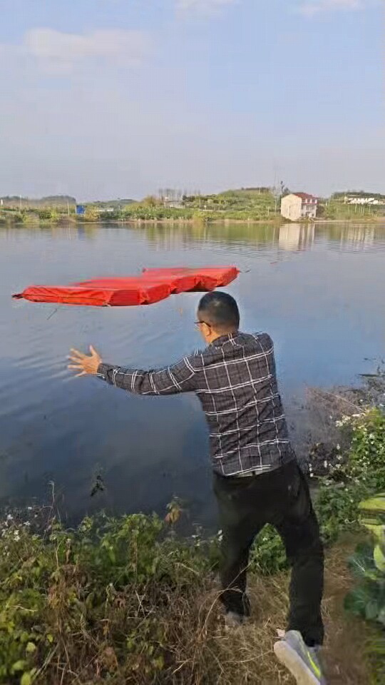 意识到不对劲,刘鸿立刻朝着岸边飞奔而去。恰巧此时,他注意到岸边有4个红色浮板,于是,他迅速抱起3个浮板奋力朝少年落水的方向抛去,另一名朋友也效仿着朝落水者抛去了1个浮板。