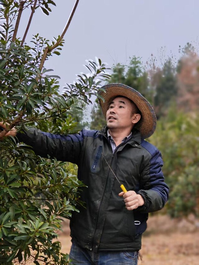 施平正在修剪杨梅树枝条