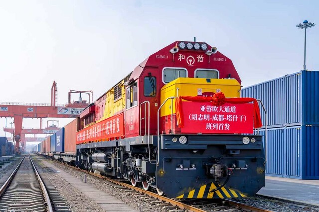 亚蓉欧大通道(胡志明—成都—塔什干)班列首发。
