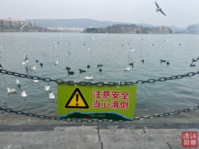 当时三江半岛光线较暗,仍有少数游客在观赏海鸥。有群众尝试用三脚架、灯架等物品施救,但未能成功。“我一看这情况,心里就想:我有能力,必须下水!” 20秒内,他迅速脱掉外衣裤,“扑通”一声跳入江中。