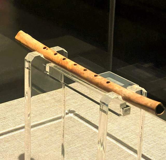 河南某博物馆展出的贾湖骨笛。 图据网络