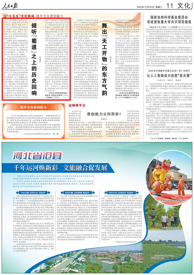 排练时,离四川省歌舞剧院不远的地方,成都地铁17号线正在建设中,地下传来隐隐的“隆隆”声,同剧院排练厅里五丁开山凿石的“叮叮”声交织在一起,仿佛回响在古与今的蜀道上——那是同一片天地、同一群儿女、同一种精神。