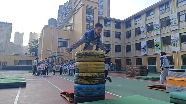 京师幼儿园小朋友做体能训练