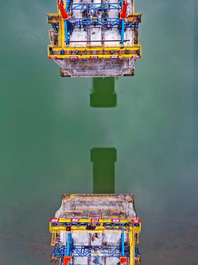2022年1月11日,隆泸叙铁路泸州金山沱江铁路大桥桥墩有序建设。