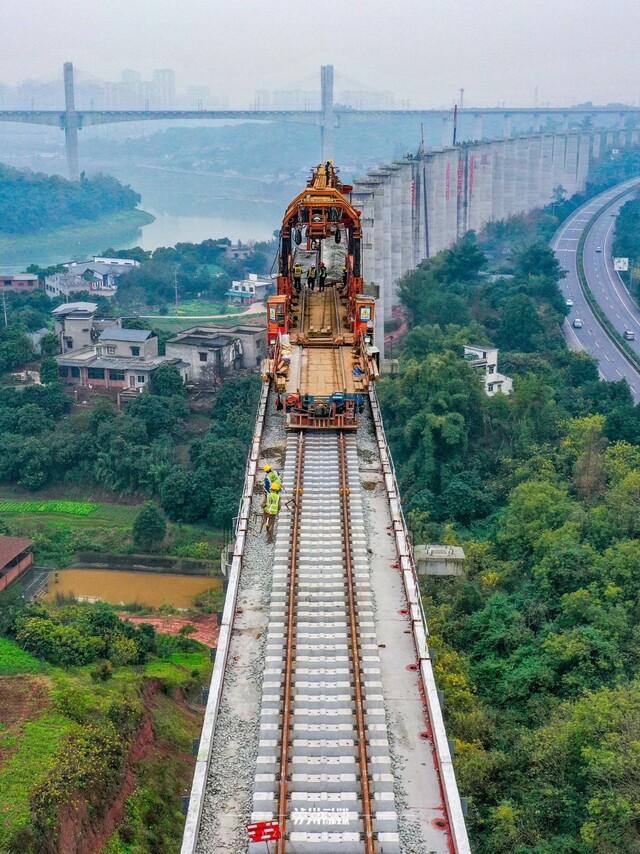2025年8月29日,隆泸叙铁路有序推进,40多名工人正利用铁路“天窗期”紧张施工,对隆黄铁路既有泸州长江铁路大桥铁路线更换桥面钢轨及轨枕。这是该桥自2002年建成以来首次大型升级改造。