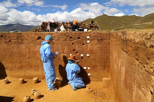 考古人员提取皮洛遗址地层中的古DNA样品(2021年9月15日摄)。新华社发(四川省文物考古研究院供图)